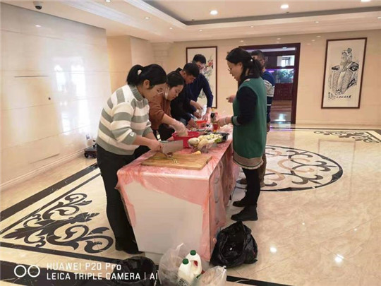 为了让全体员工体会大家庭的温暖,保证员工冬至都能吃上热气腾腾的饺子,大清早,办公室就开始提前准备食材。