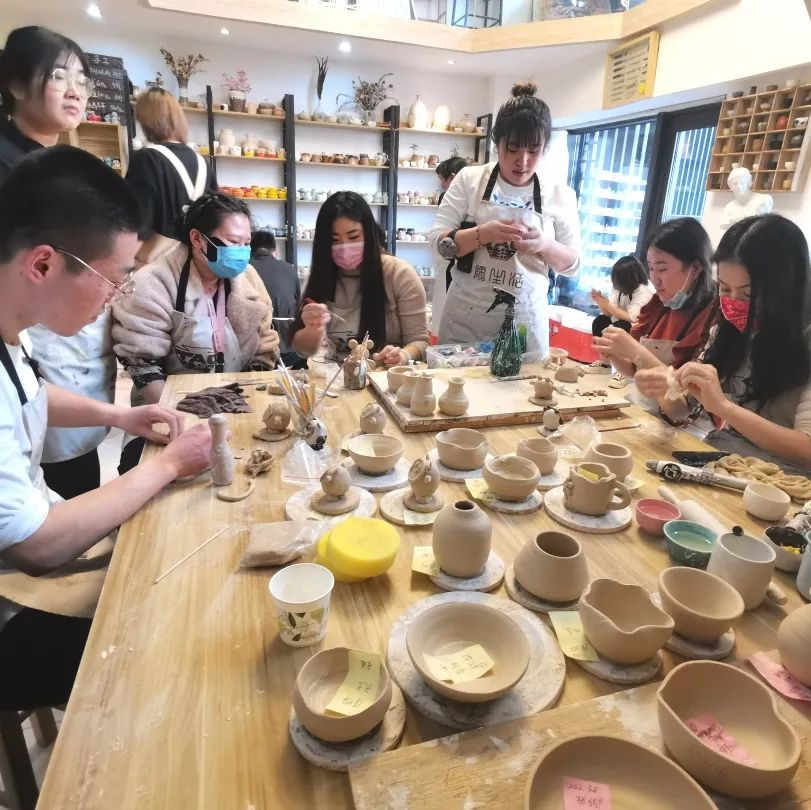 活动现场,陶艺老师对陶瓷制作整个工艺流程进行逐一讲解,并现场展示制作工艺。在认真听取学习后,大家根据各自兴趣,在陶艺与泥塑的碰撞之中,充分发挥自己的艺术想象力与创造力,全神贯注,巧手起舞。而油画组的成员们也在老师和工作人员的指导下,小心翼翼地勾线、上色,点缀,手起指落,妙笔生花。